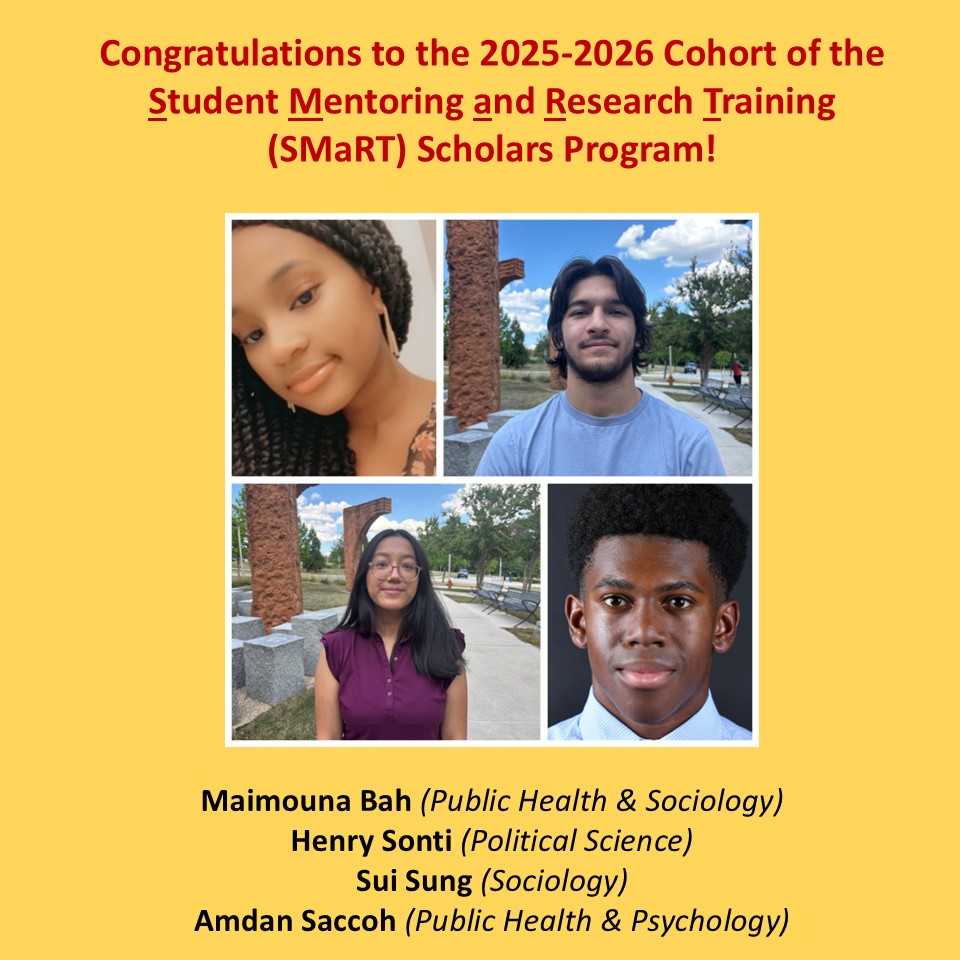 The Center for Health, Equity, & Aging (CHEA) in the Department of Sociology, Anthropology, & Public Health (SAPH) at the University of Maryland, Baltimore County (UMBC) has established a new student research training opportunity called the Student Mentoring and Research Training (SMaRT) Scholars Program. The first SMaRT Scholar cohort (2023-2024) was generously sponsored by the College of Arts, Humanities, and Social Sciences (CAHSS) Dean’s Office.